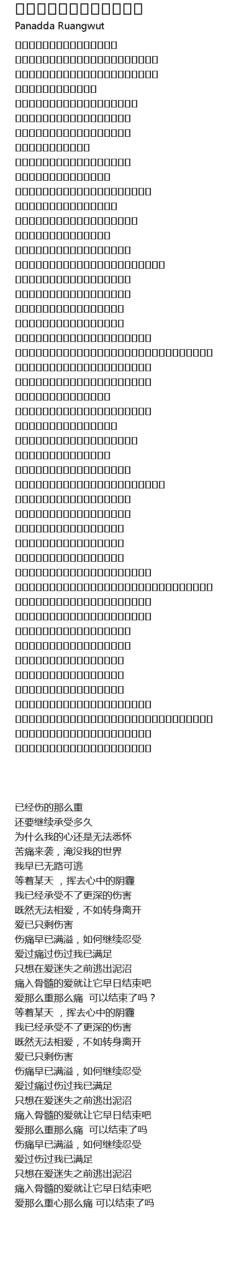| [00:15.490] | เจ็บมานานแค่ไหน จะต้องเจ็บไปอีกนานไหม |