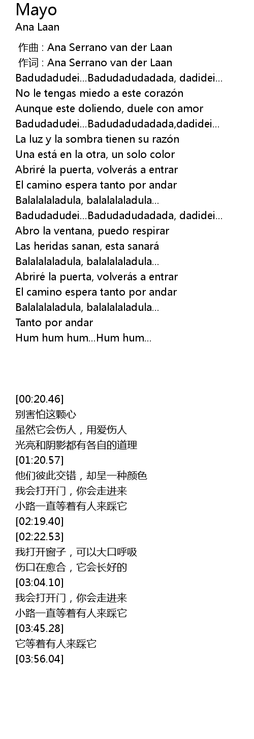 | [00:00.00] | zuò qǔ : Ana Serrano van der Laan |