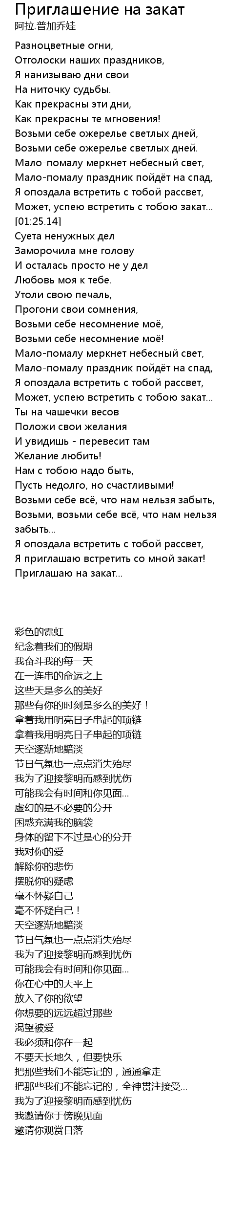 | 歌曲 | Приглашение на закат |