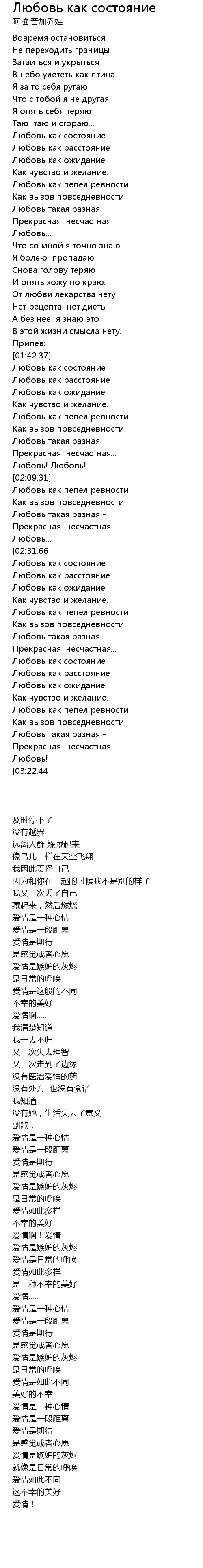 | [01:41.80] | Любовь как состояние |