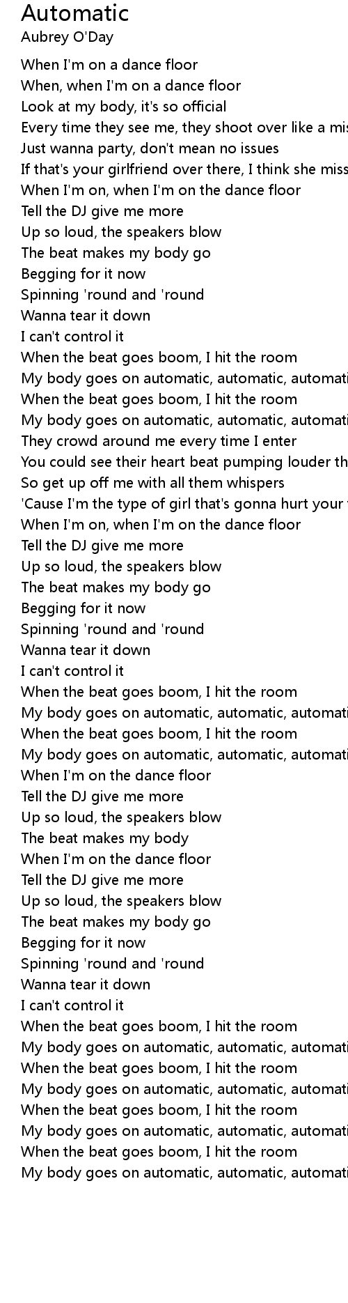 My body goes on automatic, automatic, automatic, automatic
