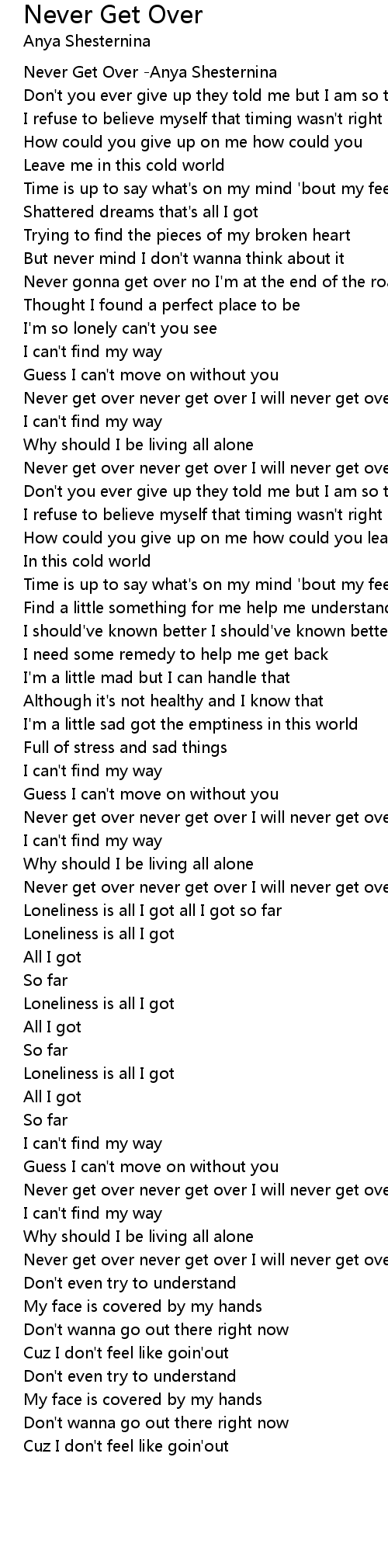 Never Get Over -Anya Shesternina |