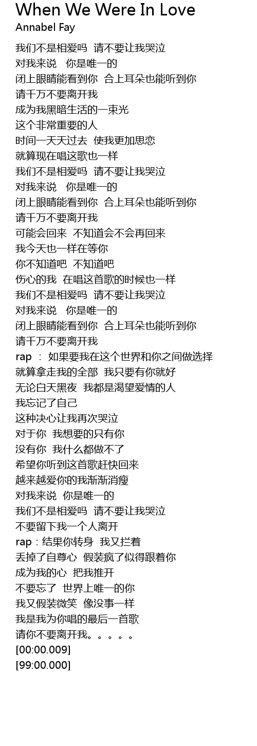 | 歌曲 | When We Were In Love |
