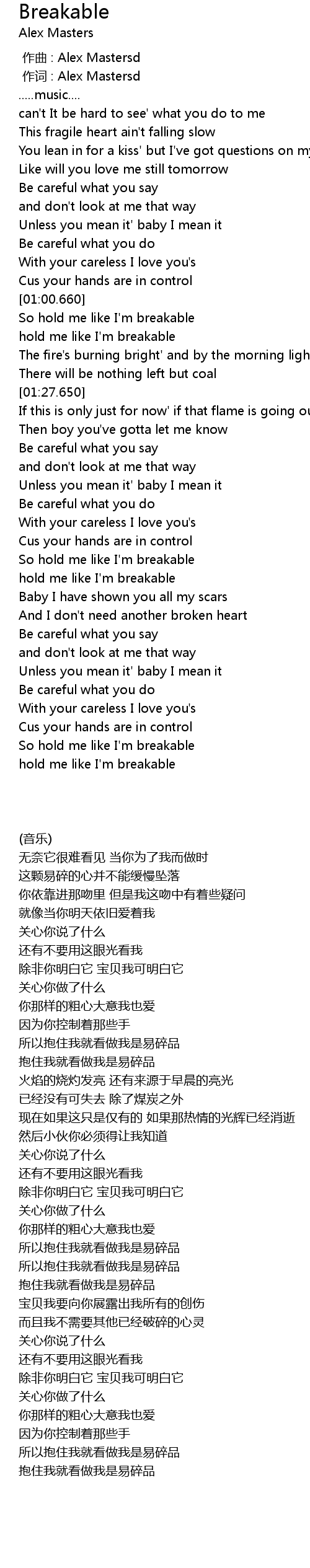 | [02:02.250] | 所以抱住我就看做我是易碎品 |