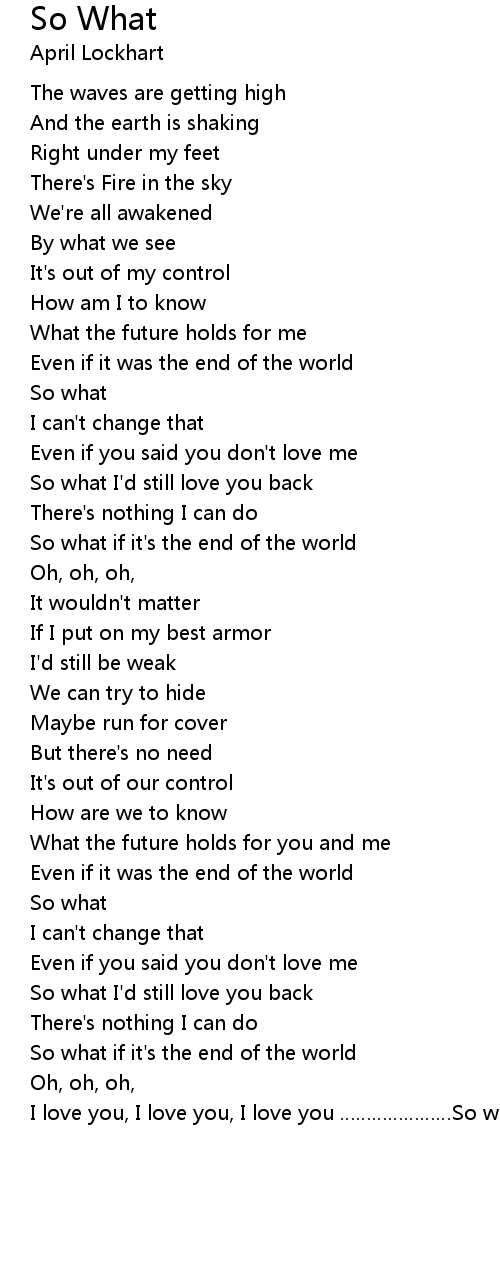 | [02:03.79] | So what if it' s the end of the world |