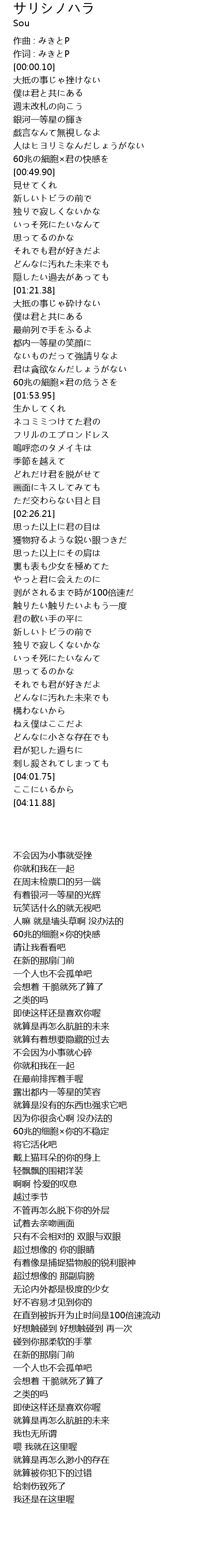 | [00:00.05] | 作词 : みきとP |