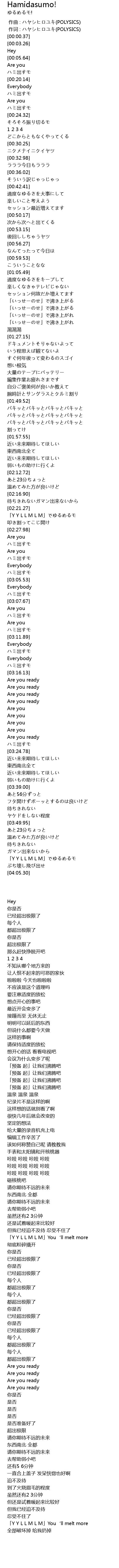 | [00:00.012] | 作词 : ハヤシヒロユキ(POLYSICS) |