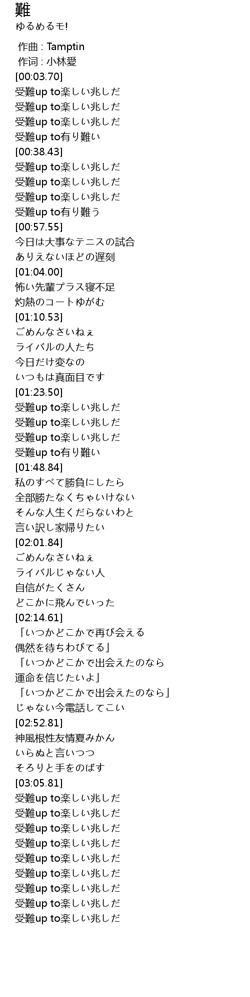 | [03:28.56] | 受難up to楽しい兆しだ |