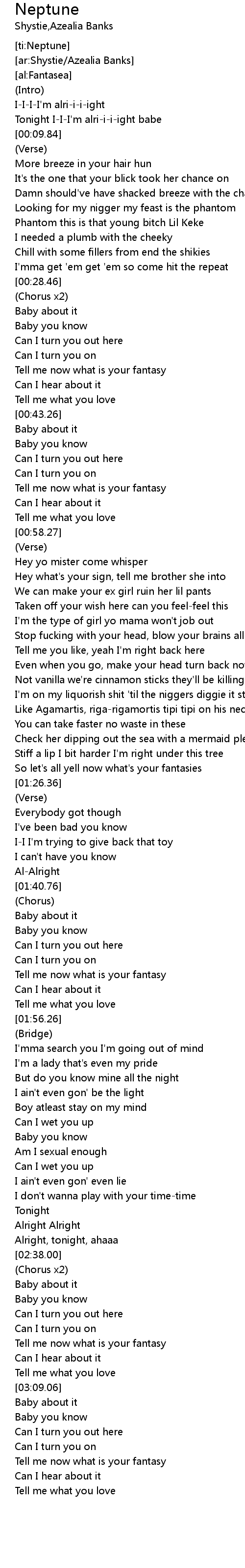 | [00:20.37] | Looking for my nigger my feast is the phantom |