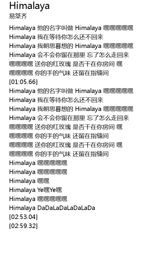 | [02:44.81] | Himalaya 嘿嘿嘿嘿嘿 |