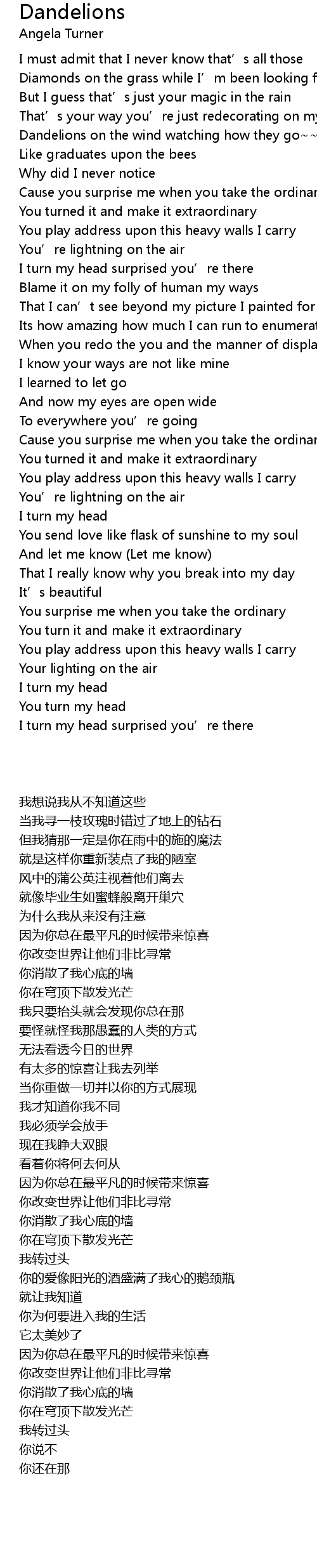 | [00:56] | Cause you surprise me when you take the ordinary |