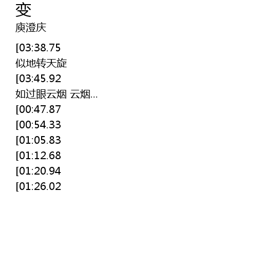 | [04:03.74][03:45.92][02:02.41][01:44.92][00:19.37] | 当意念改变 如过眼云烟 云烟... |