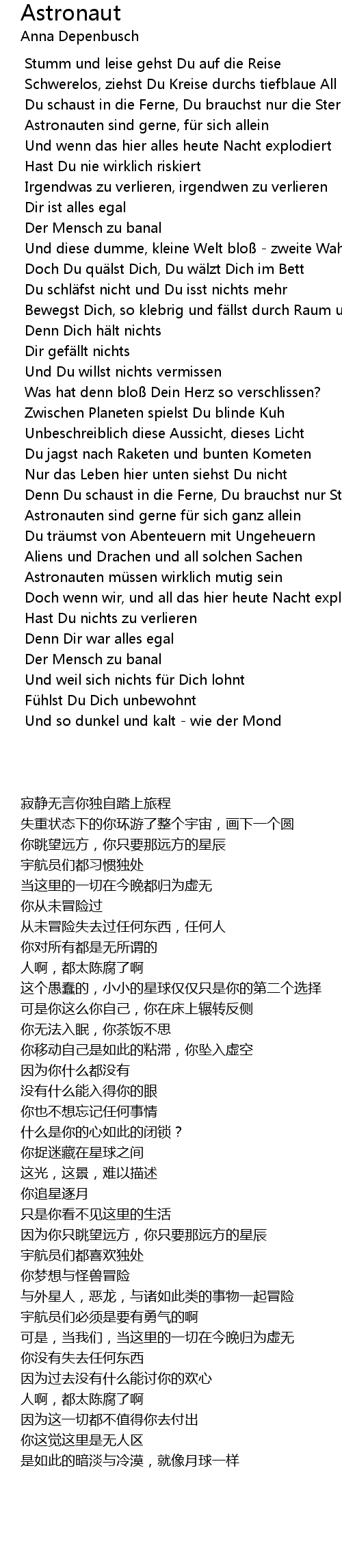 | [00:39] | Astronauten sind gerne, fü r sich allein |