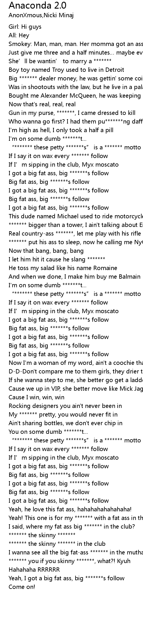 | [02:18.92] | I got a big fat ass, big *******s follow |