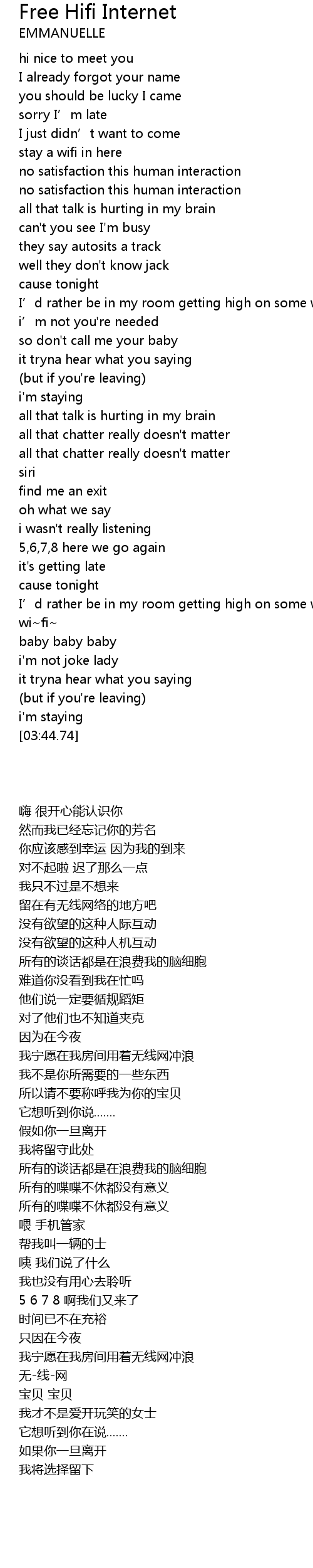 | [02:43.63] | I' d rather be in my room getting high on some wifi |