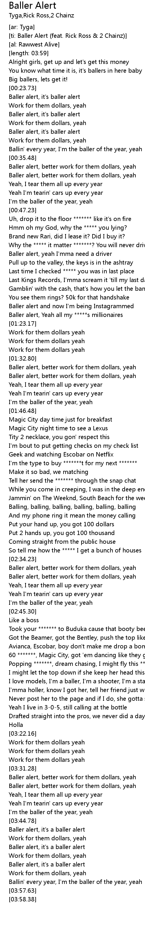 | [ti: Baller Alert (feat. Rick Ross & 2 Chainz)] | |