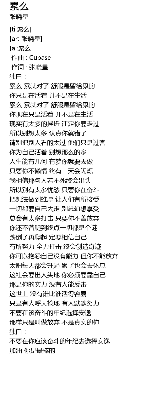 | [00:02.67] | 累么 累就对了 舒服是留给鬼的 |