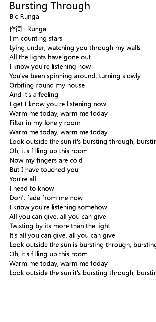 | Look outside the sun is bursting through, bursting through | |