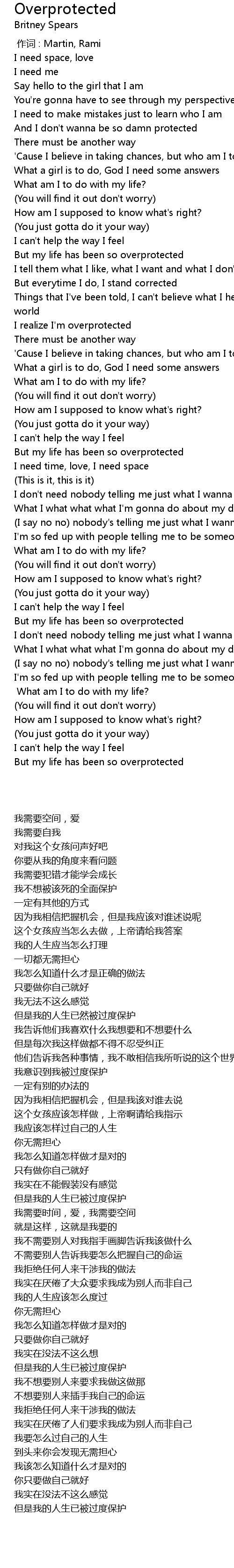 | 歌曲 | Overprotected |