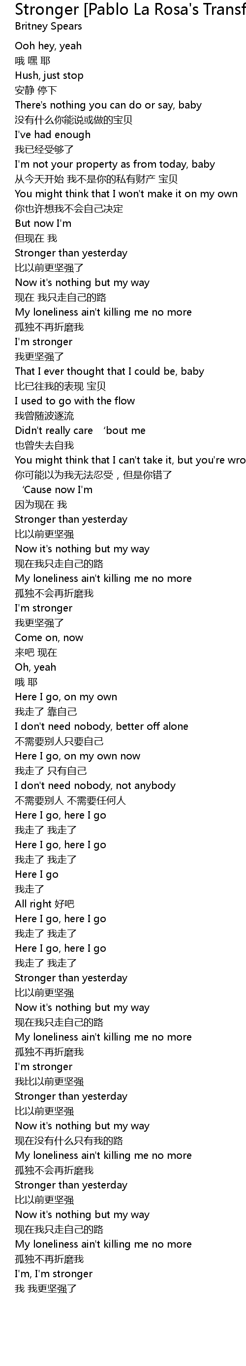 | 歌曲 | Stronger [Pablo La Rosa's Transformation] |