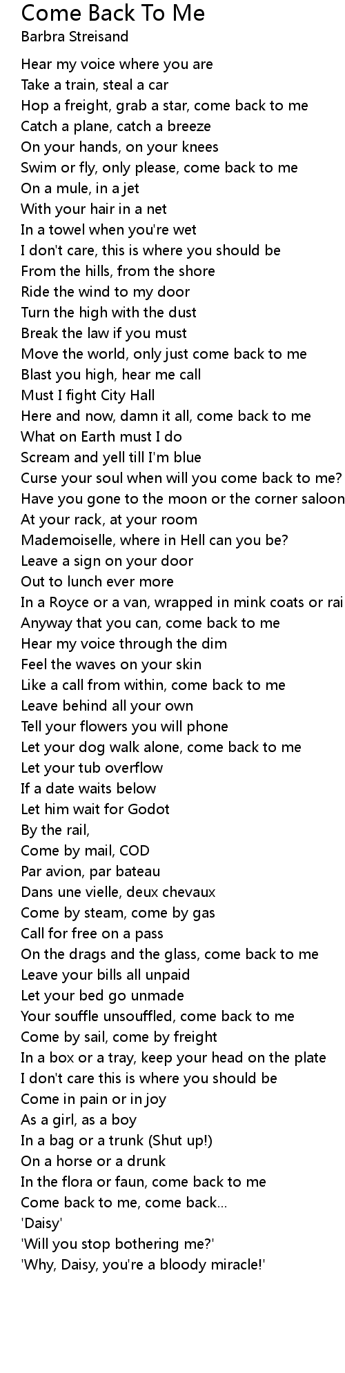 Come back to me, come back... |