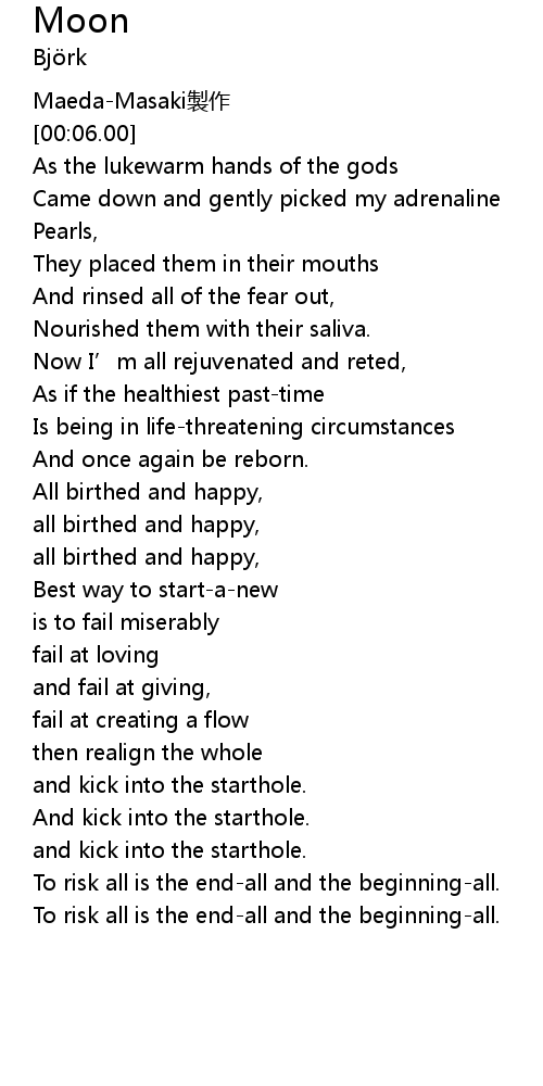 | [04:44.16] | To risk all is the endall and the beginningall. |