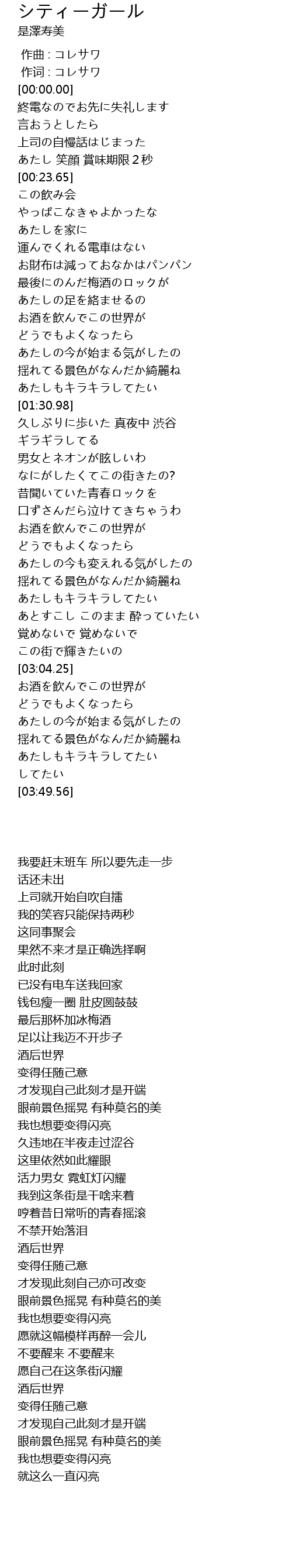 | [00:00.000] | 作词 : コレサワ |