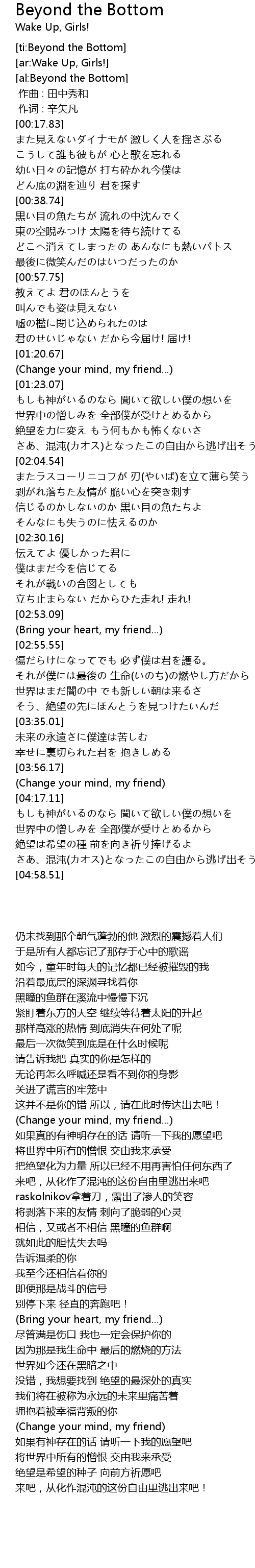 | [04:45.35] | 来吧,从化作混沌的这份自由里逃出来吧! |