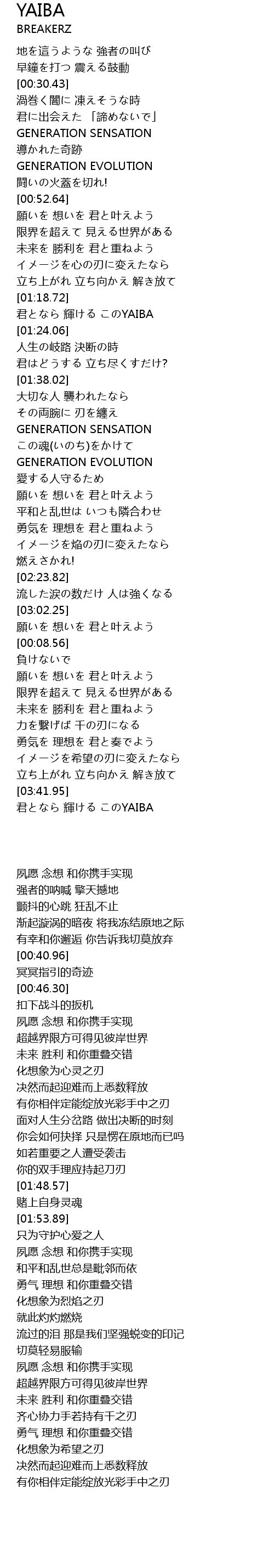 | [03:42.53] | 君となら 輝ける このYAIBA |