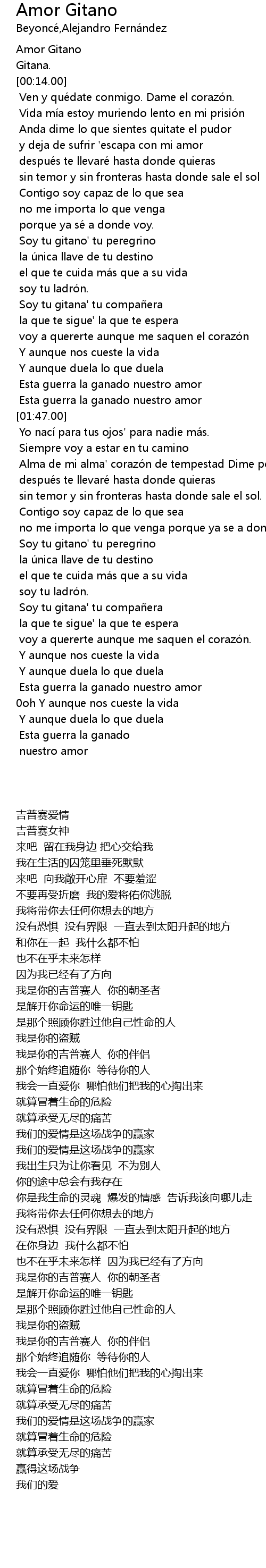 | [00:00.00] | Amor Gitano |