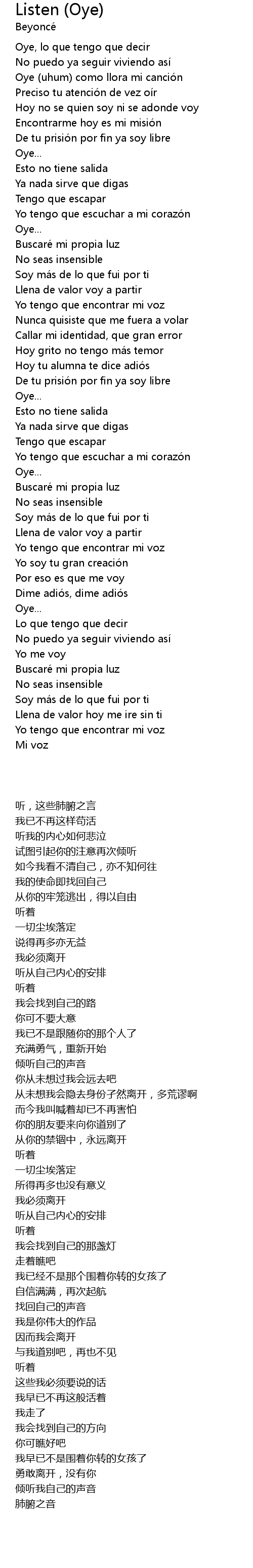 | 歌曲 | Listen (Oye) |