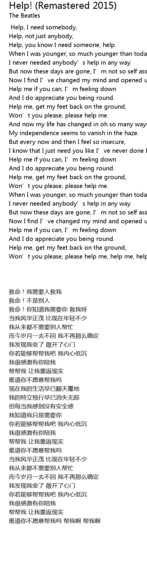 | 歌曲 | Help! (Remastered 2015) |