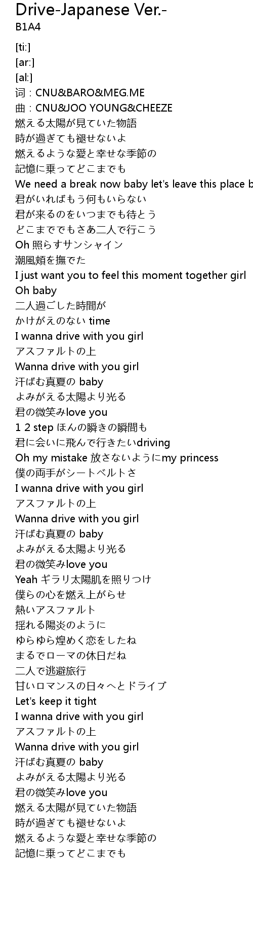 | [02:07.65] | Wanna drive with you girl |