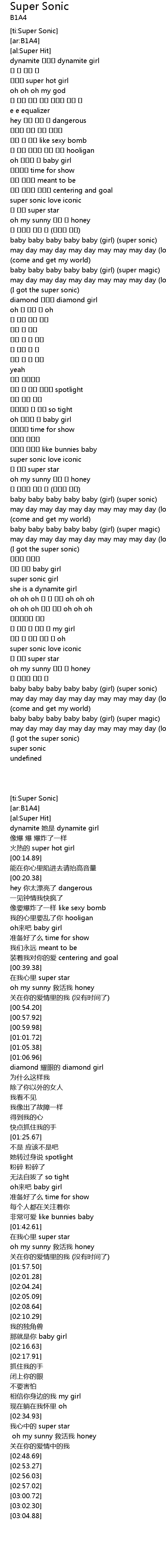 | [00:54.20] | baby baby baby baby baby girl super sonic |