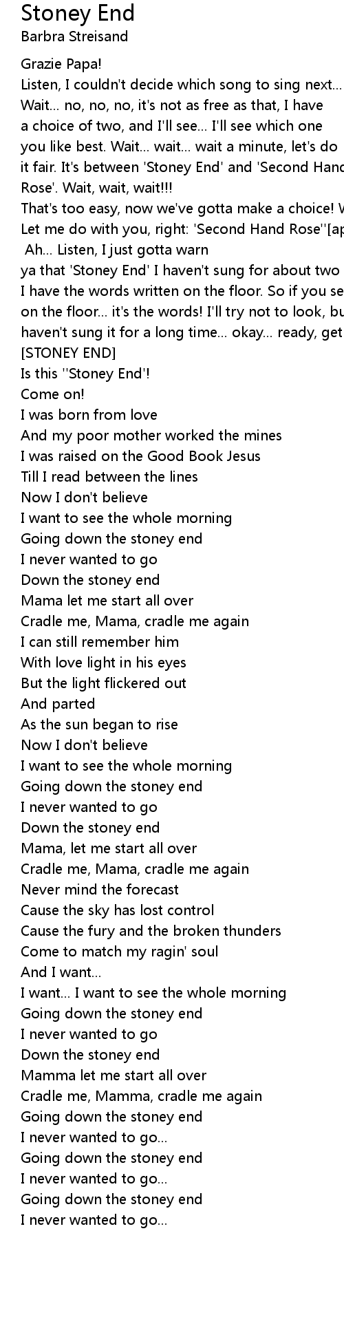 ya that 'Stoney End' I haven't sung for about two years, and so |