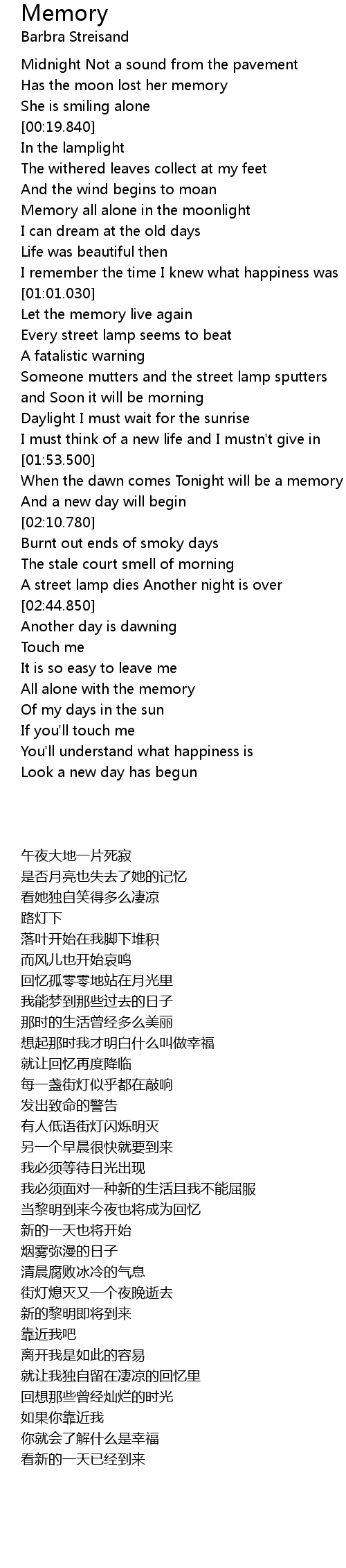 Memory all alone in the moonlight |