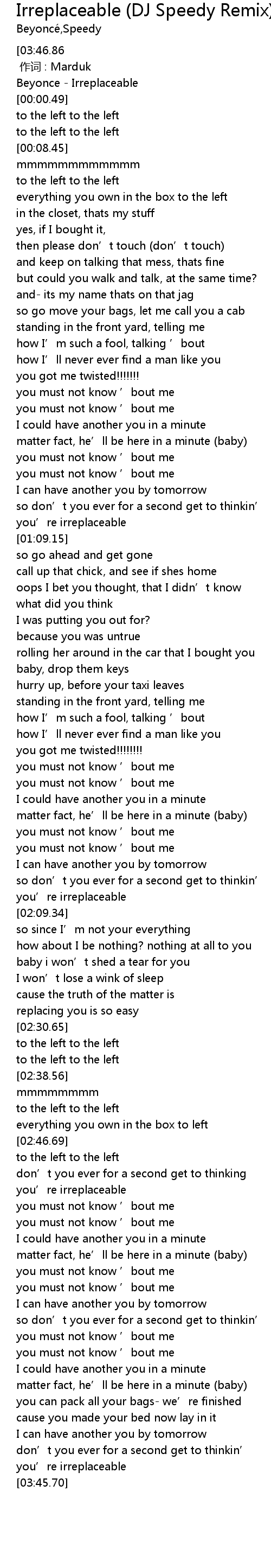 [00:00.00] Beyonce - Irreplaceable