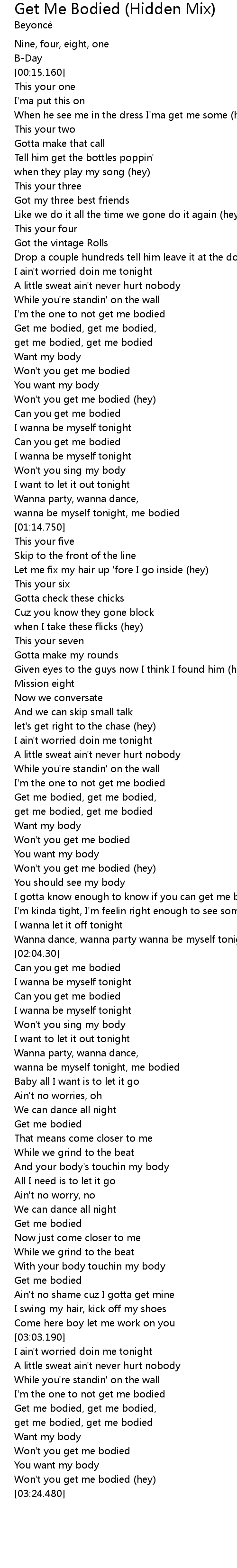 | [03:21.770] | Won't you get me bodied (hey) |