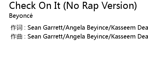 | [00:00.000] | 作曲 : Sean Garrett/Angela Beyince/Kasseem Dean/Beyonce Knowles |
