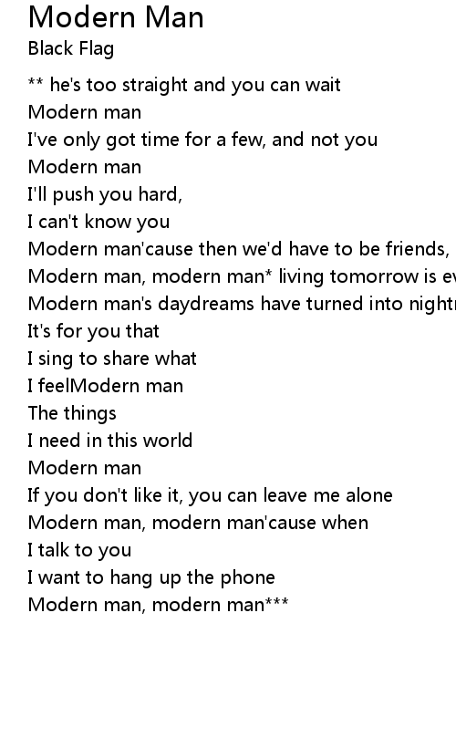 Modern man, modern man* living tomorrow is everyone's sorrow |