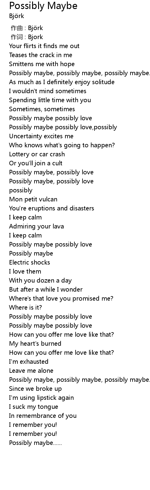 | [01:42.453] | Possibly maybe possibly love,possibly |