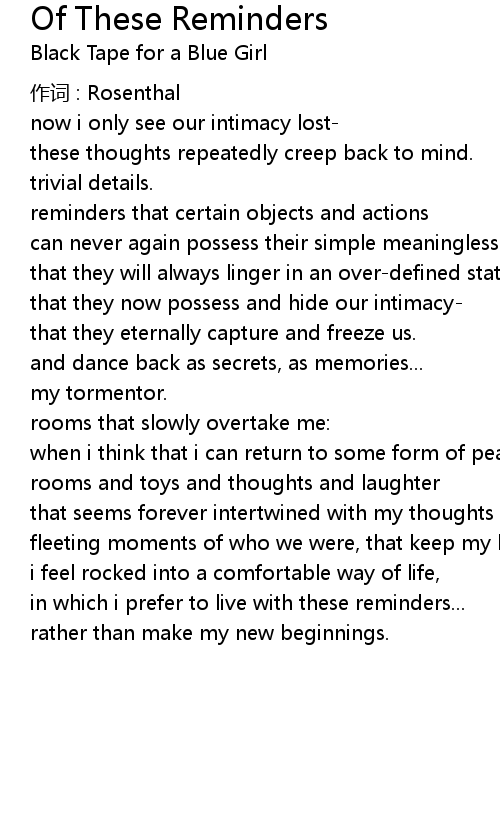 | 歌曲 | Of These Reminders |