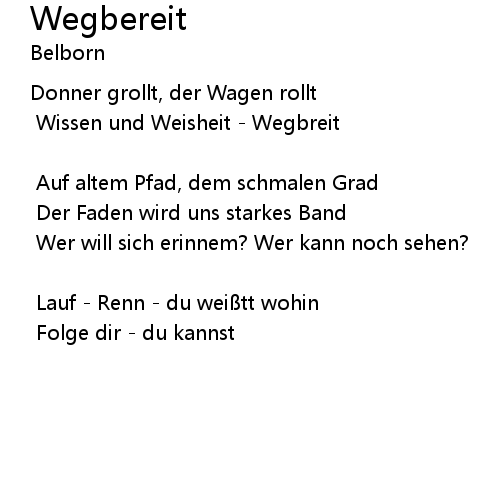 | 歌曲 | Wegbereit |