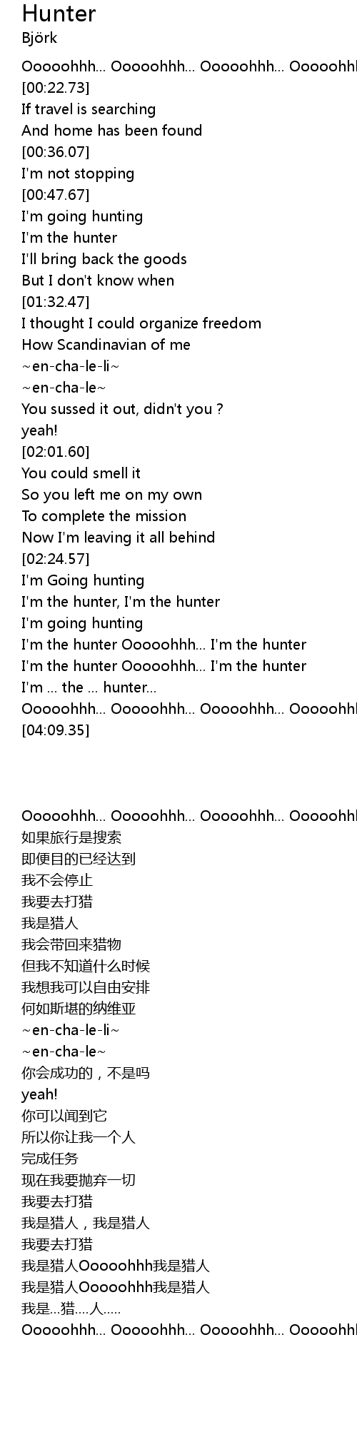 I'm the hunter Ooooohhh... I'm the hunter |