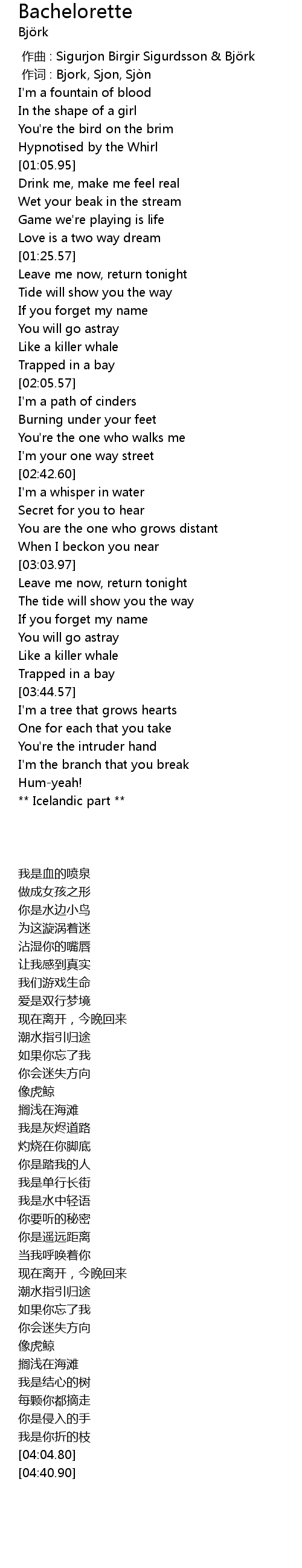 | [00:01.00] | 作词 : Bjork, Sjon, Sjòn |