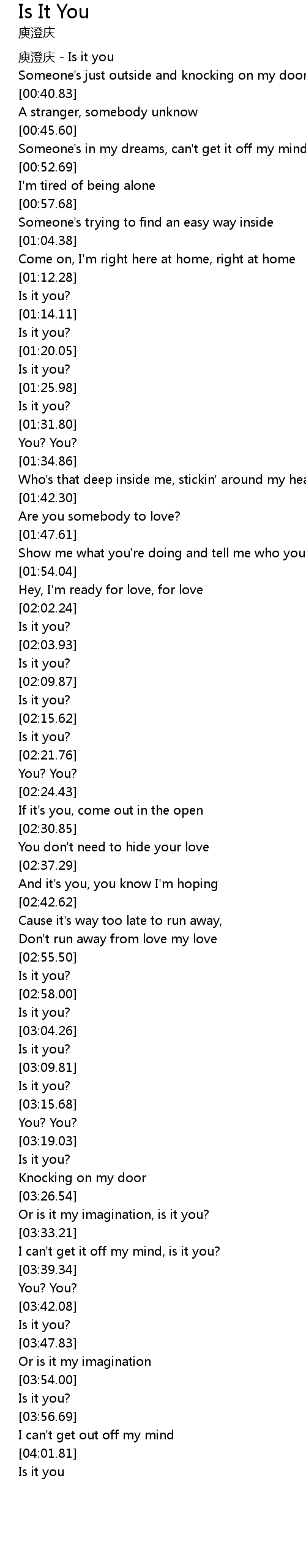 | [00:02.05] | 庾澄庆 - Is it you |