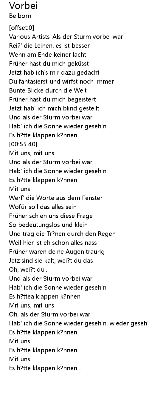 | [02:22.50] | Oh, als der Sturm vorbei war |