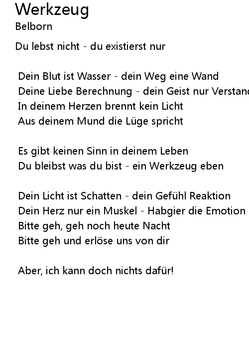 | Du bleibst was du bist ein Werkzeug eben | |