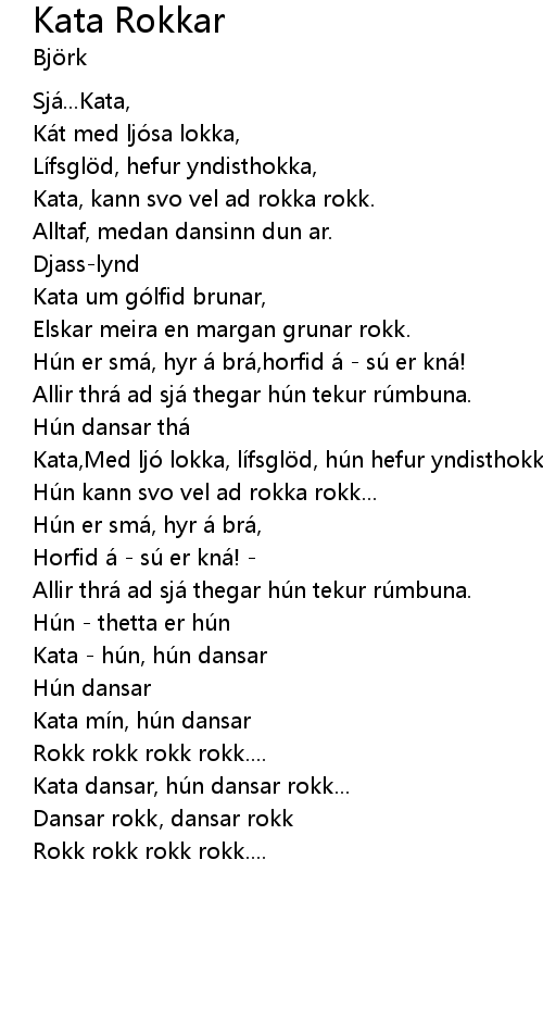 | Kata,Med ljó lokka, lífsglöd, hún hefur yndisthokka. | |