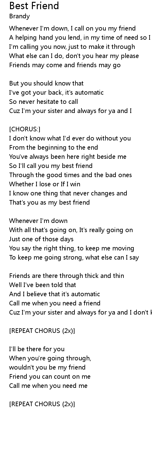 | So I'll call you my best friend | |
